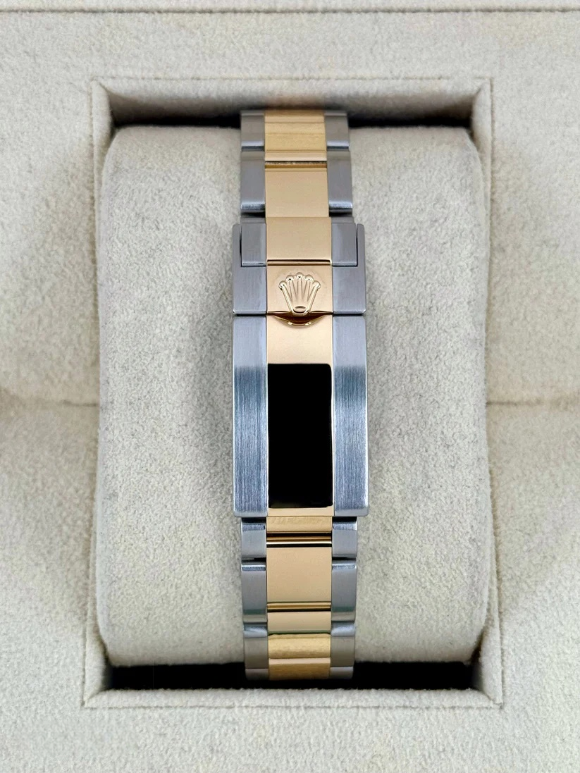 | Bracelet: | Stainless steel and 18k yellow gold oyster bracelet with flip-lock clasp. Fits a 7 3/4'' wrist. |