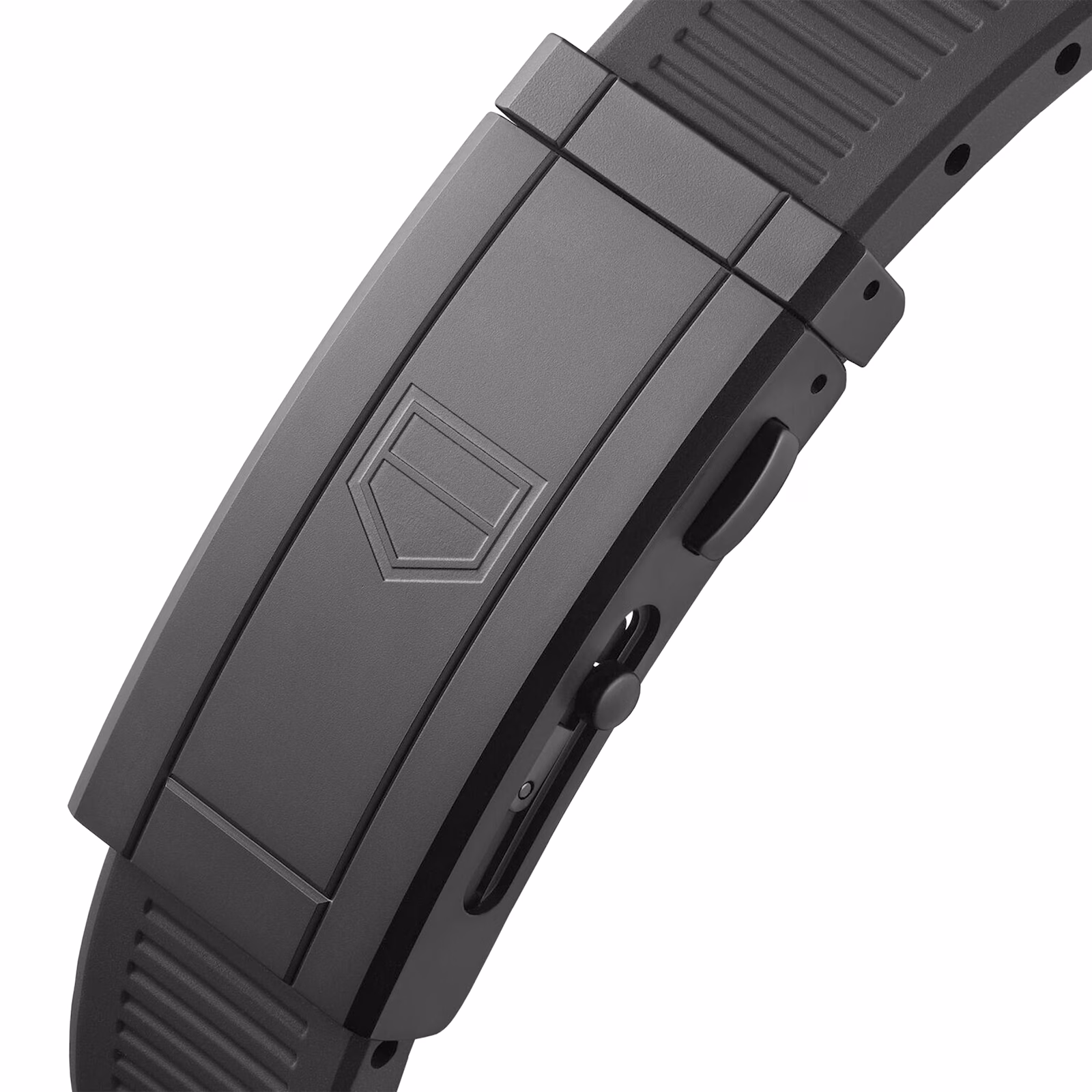 This striking 43mm model pairs a slim, black DLC coated stainless steel case with a black refined rubber strap with steel DLC buckle.